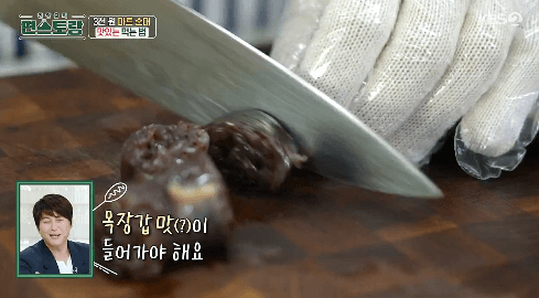 12. 붐씨 순대 좀 먹을 줄 아시네요. 뜨거운 순대를 자를 때, 목장갑 끼고 자르시는 어남선생님.