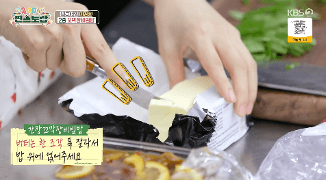 신상출시 편스토랑 | 이정현의 꼬막장 더 맛있게 먹는 방법! 고소짭짤 간장꼬막장비빔밥 & 침샘폭발 매콤꼬막장비빔밥 ■ 요리 재료 밥 한 공기, 간장꼬막장 크게 3T, 꼬막장 국물 5T, 버터(마가린