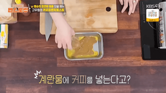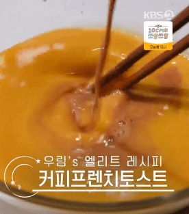 이번에 만들 건 프렌치토스트인데요. 약간의 변화로 너무나 색다른 맛을 내는 토스트를 만들 거예요. 커피맛도 나고, 아주 달콤한 토스트 만들어봐요.
