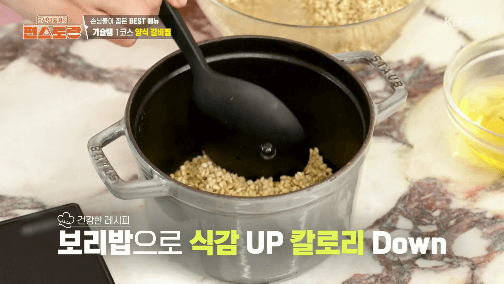 1. 보리쌀은 30분간 물에 불린 뒤 체에 밭쳐 물기를 빼줍니다.