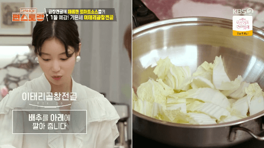 기은세씨가 아라비아따 소스를 사용해서 이태리 느낌 나는 곱창전골을 만든다고 합니다. 곱창전골 좋아하시는 분들은 이거 꼭 만들어 보세요. 곱창전골의 새로운 레시피입니다.