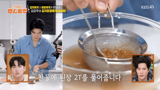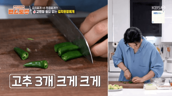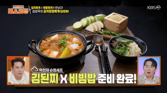 김치찌개를 끓일까 된장찌개를 끓일까? 고민되신다면, 김강우씨 레시피로 김치된장찌개를 끓여보세요. 다른 반찬도 필요 없어요. 그냥, 이거 하나면 한 끼 식사 해결됩니다.