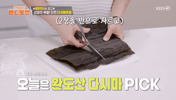2. 완도산 다시마 2장으로 반으로 잘라줍니다.