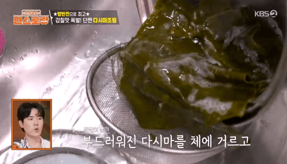 4. 불린 다시마를 체에 건져내고, 물기를 빼줍니다.