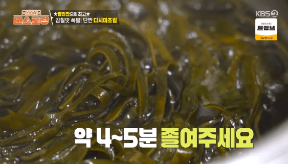 8. 양념이 자작자작한 정도로 졸여줍니다. 너무 오래 익히면 다시마가 질려집니다.