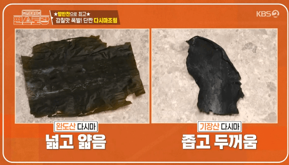 1. 조림용으로 사용하기 위해 넓고 얇은 완도산 다시마를 준비합니다.