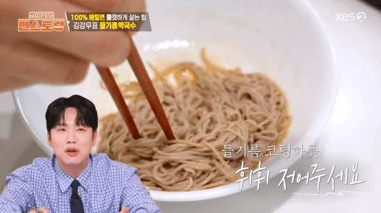 메밀요리에 100% 메밀면을 사용하면 면이 찰기가 없고, 끊어질 수가 있다고 합니다. 그런데, 김강우씨는 이 문제를 해결하는 방법을 알고 있다는데요. 어떻게 하면 좋을지 같이 알아볼까요?