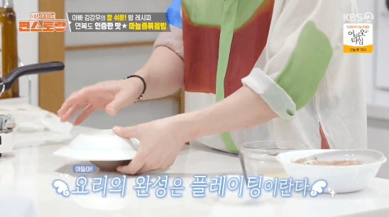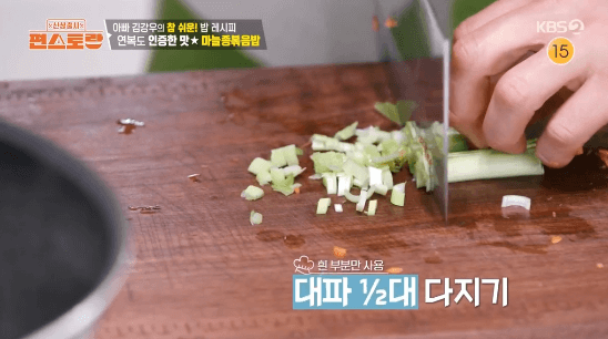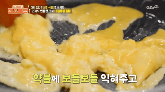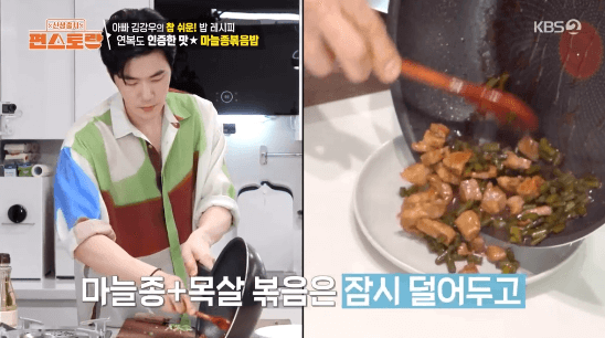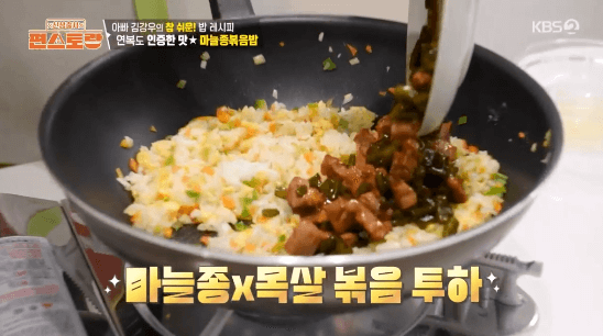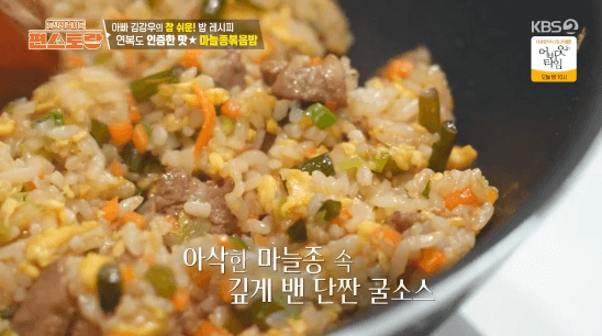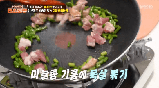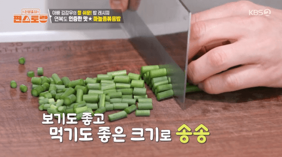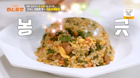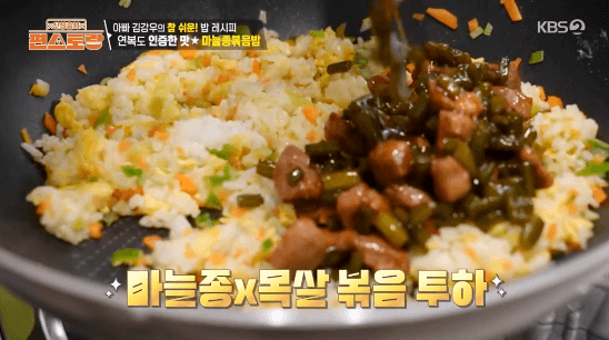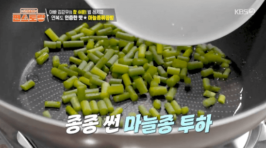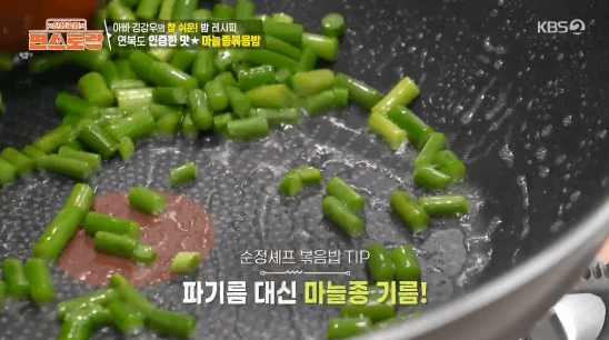 김강우씨 레시피로 아삭아삭한 마늘쫑을 넣은 마늘쫑볶음밥을 만들어 볼게요. 고소하고, 아삭한 식감의 볶음밥 만들어 보세요.