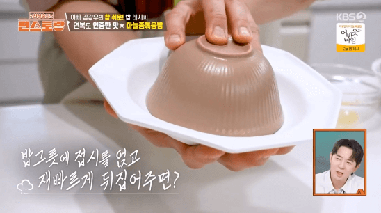 19. 접시와 그릇을 뒤집은 뒤 그릇을 들어냅니다.
