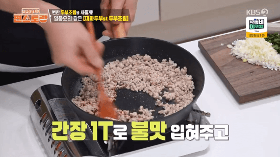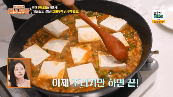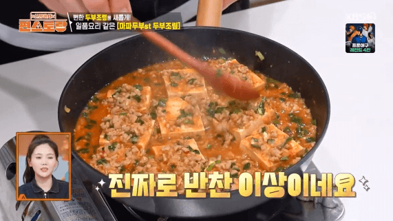 부드러운 연두부로 마파두부를 만들어서 맛있게 밥에 비벼먹으면, 밥이 술술 넘어갑니다. 밥이 꿀맛, 연두부 마파두부 만들어봐요. 연두부 마파두부 - 김재중의 고기 없이 미역국 만들기 편스토