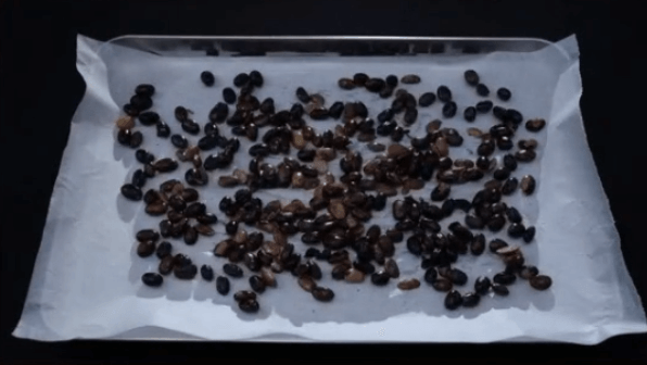 6. 쟁반에 서리태를 넓게 깔아 물기를 말리고 식혀줍니다.