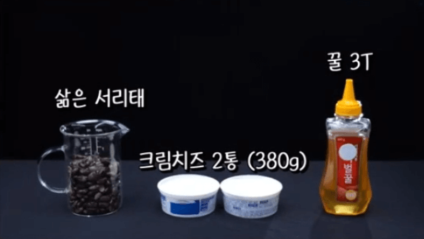 7. 볼에 식힌 서리태, 크림치즈 2통(380g), 꿀 3큰술을 넣고 섞어서 서리태 크림치즈를 만듭니다.