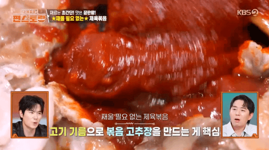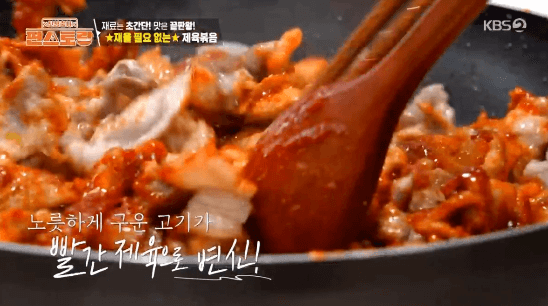 먹는 것에 일가견이 있는 김준현씨가 드디어 편스토랑에 편셰프로 출연했습니다. 즉석에서 만드는 여러 가지 제육요리를 소개했는데요, 그 첫 번째로 즉석 제육볶음을 만들어 보겠습니다. 즉석