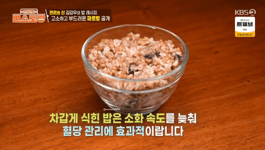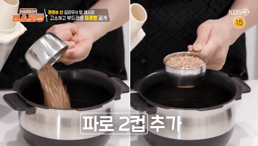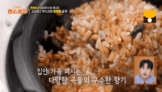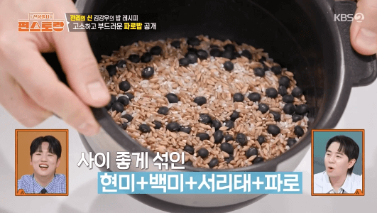 새로운 편셰프가 된 김강우씨는 잡곡밥을 즐겨 먹는다고 합니다. 요즘은 단백질 함량이 현미의 2배이고, 저당, 저탄수화물인 '파로'라는 곡물을 넣어서 잡곡밥을 짓는다고 합니다.