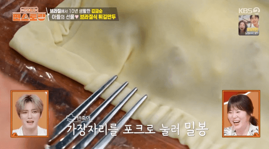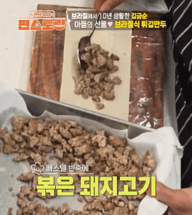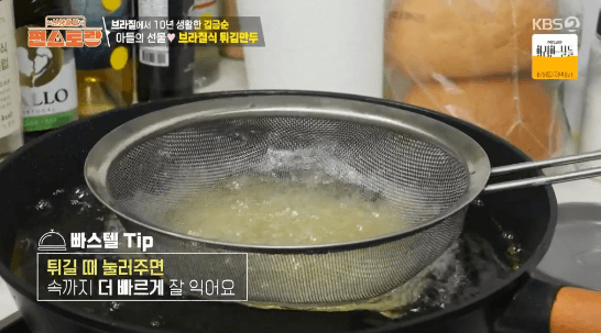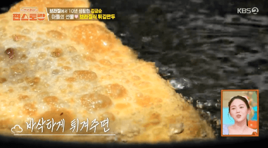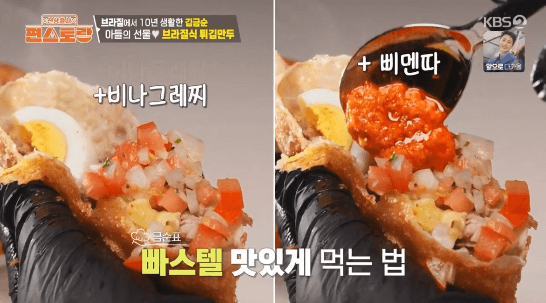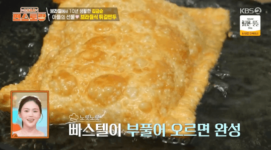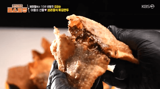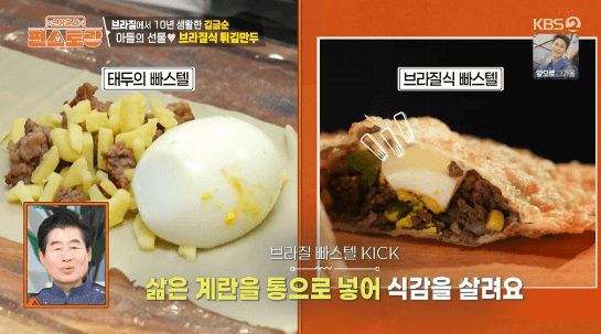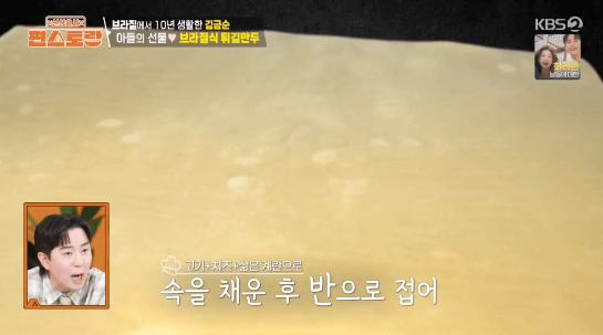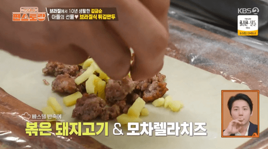 파이 같기도 하고 군만두 같기도 한 브라질 요리입니다. 빠스텔 피가 구하기 어렵다는데, 영화배우 김금순씨의 아들이 특별히 구한 빠스텔 피로 만든다고 합니다.