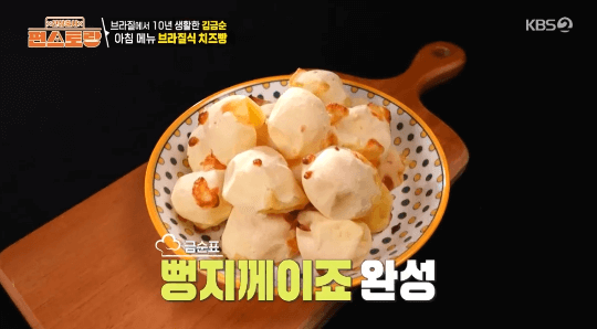 오랫동안 브라질에서 생활했던 김금순씨는 지금도 브라질 요리를 종종 만드는 것 같은데요. 이번에는 브라질의 국민방 뻥지께이죠를 만든다고 합니다. 우리나라 깨찰빵과 비슷한 것 같아요.