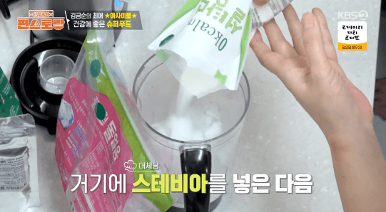 3. 아사이베리 분말 210g을 넣습니다. (아사이베리 분말과 스테비아는 1:1 비율로 맞춰줍니다.)