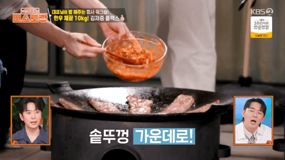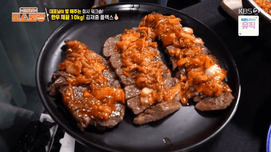 김재중씨가 자신의 기획사 소속 배우들과 회식을 하는 자리를 만들었습니다. 소속 배우들을 위해서 직접 요리를 했는데요. 채끝살 스테이크를 굽고, JJ맛김치를 곁들여서 만드는 요리 같이 알아봐요.