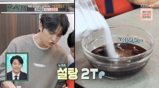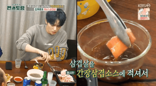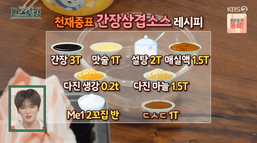 조미료를 잘 사용해서, 요리를 쉽게 만드는 방법을 알려주는 김재중씨가 미원과 간장으로 간장삼겹소스 만드는 방법을 알려준다고 합니다. 삼겹살을 이 소스에 찍어서 구워 먹으면 고기맛이 아주 좋아진다고 하니깐 꼭 만들어보세요.