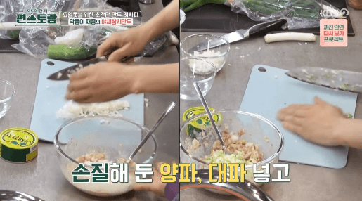 만두를 만들려고 하면, 재료 하나하나 손이 많이 갑니다. 그런데, 여러 재료를 준비하는 번거로움을 야채참치 하나로 해결하는 재밌는 레시피를 김재중씨가 알려줍니다. 쉽고 재밌게 만두를 만들어보세요.