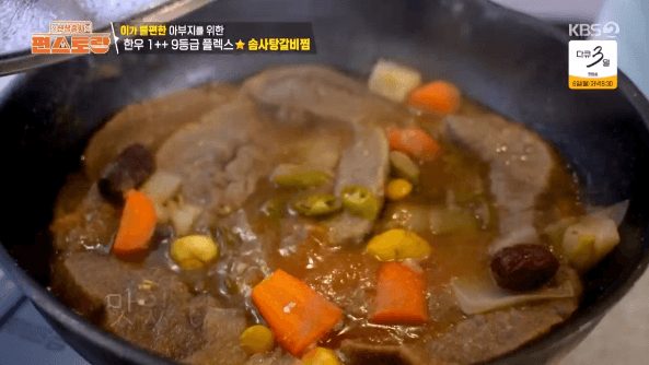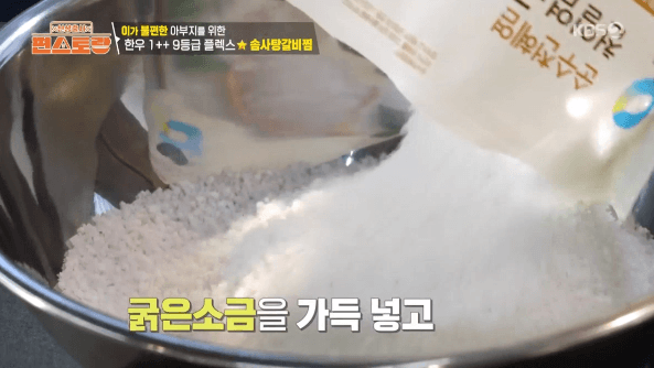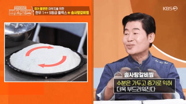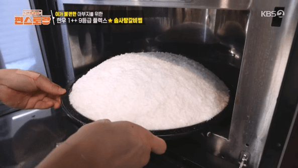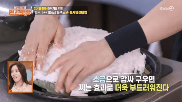 솜사탕 갈비찜이라고 해서 '갈비찜에 웬 솜사탕이지?' 했는데, 진짜 솜사탕이 들어간 건 아닙니다. 갈비찜을 만든 뒤 소금으로 덮어서 구워 먹는 재미있는 요리입니다.