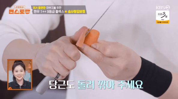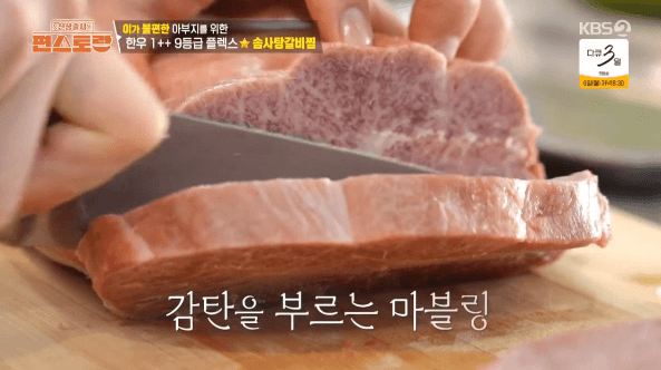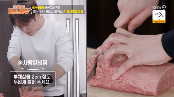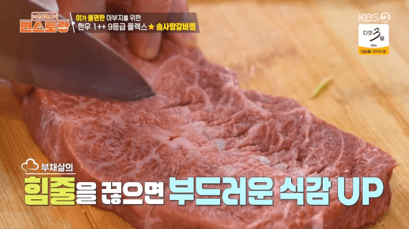 2. 통 부챗살을 2cm 두께로 썰어줍니다.