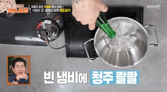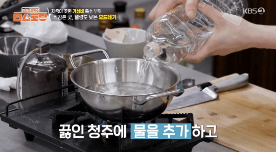 8. 냄비에 청주 200ml를 넣고, 끓여줍니다.