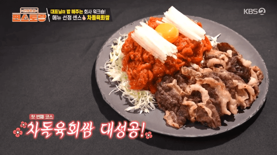 육회도 그냥 먹지 않는다. 맛있는 양념소스에 버무려, 차돌구이에 싸 먹는 차돌 육회쌈 같이 만들어 봐요.
