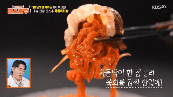 지난 포스팅에서 묵은지로 묵은지육회김밥과 묵은지깻잎을 어떻게 만드는지 알아봤습니다. 이번에는 깻잎막회에 대해서 알아볼텐데, 이렇게 3가지 요리를 이상엽씨는 묵은지 삼합이라고 칭했