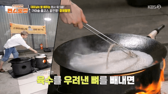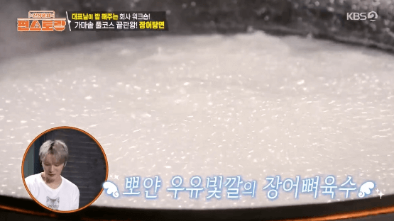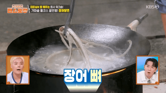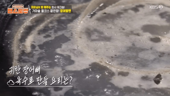 장어뼈를 삶은 육수에 라면을 끓여서 보양이 되는 라면요리를 만들어 보겠습니다. 맛있게 익은 파김치도 같이 먹으면 더 맛있겠죠?!