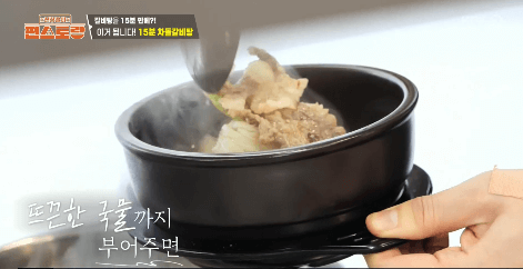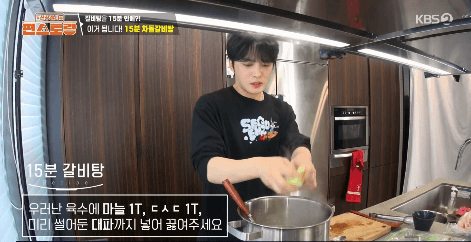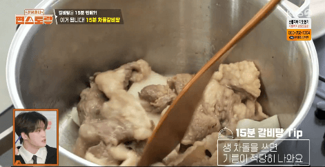 갈비탕을 끓이려면 재료 손질부터 삶기까지 손도 많이 가고, 시간도 많이 걸립니다. 그런데, 김재중씨가 차돌박이를 사용해서 간편하게 15분이면 갈비탕 맛을 만들어 내는 방법을 알려준다고 합니다.