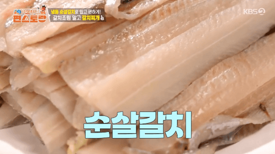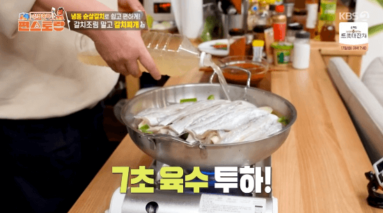 냉동 순살갈치를 사용해서, 갈치찌개를 만들어 볼게요. 갈치는 냉장실에서 천천히 해동해서 사용하세요. 육수는 사용하는 레시피가 있다면 그걸 사용해도 되고, 김준현씨의 7초 육수를 사용해도 됩니다.