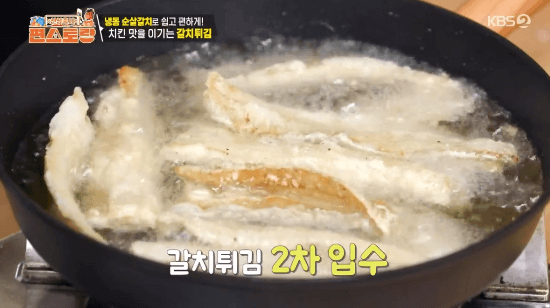 1. 순살갈치를 냉장고에서 천천히 해동시켜 줍니다. (김준현씨는 '2지 냉동 순살갈치'를 사용했습니다.)