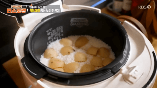3. 썰어둔 감자를 올리고, 취사를 눌러 밥을 짓습니다.
