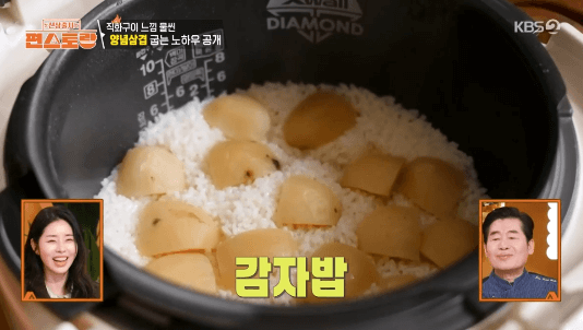 맨날 그냥 밥 먹는 것 가끔 질리잖아요. 어렵지 않게 변화 주는 방법. 감자밥 만들어 보세요. 감자만 있으면 되니깐, 쉽게 만들 수 있어요.