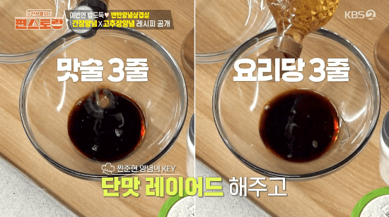 9. 맛술 3줄, 요리당 3줄을 넣습니다.