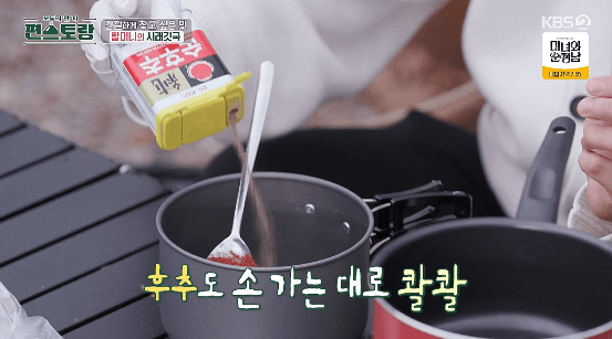 캠핑을 간 김호중씨가 총각김치를 넣은 총각김치찌개를 만든다고 합니다. 총각김치를 통째로 넣고 푹 끓여서 시원한 국물맛이 일품이라고 합니다. 캠핑 가서 총각김치를 통째로 넣고 끓이면 도