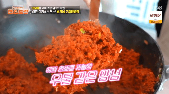 남보라씨 어머니의 레시피로 모든 요리의 기본이 되는 고추 양념장을 만들어 볼게요. 집에 이거 하나 만들어 두면, 여러 요리에 활용하면서 요리가 정말 쉬워진답니다.