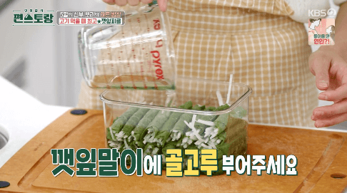 피클을 만들 건데요. 피클이라면 뭔가 어렵게 느껴집니다. 그리고, 좋아하는 사람도 있고, 그렇지 않은 사람도 있습니다. 그런데, 남보라씨가 만드는 깻잎 피클은 누구나 좋아할 만한 맛입니다.