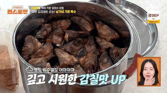 남보라씨의 어머님이 직접 방송에 출연해서 대박집 레시피를 알려주셨습니다. 그 시작은 육수입니다. 육수 하나 맛있게 끓여 놓으면, 마르지 않는 샘처럼 여러 가지 요리에 활용할 수 있어서 우물 육수라고 한답니다.