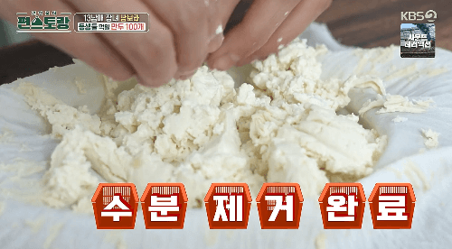 4. 두부는 으깨서 면포에 넣은 뒤 꽉 차서 물기를 제거해 줍니다.