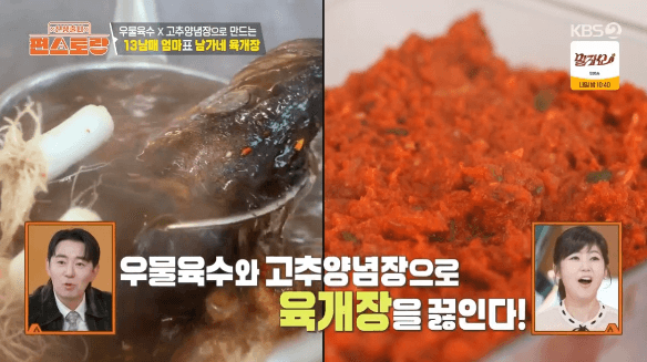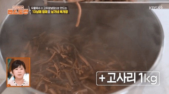남보라씨의 어머님이 직접 방송에 출연해서 대박집 레시피를 알려주셨습니다. 그 시작은 육수입니다. 육수 하나 맛있게 끓여 놓으면, 마르지 않는 샘처럼 여러 가지 요리에 활용할 수 있어서 우