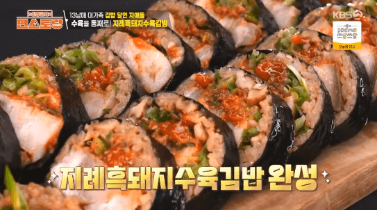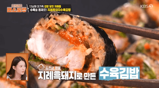 김천의 식재료인 쫀득한 지례 흑돼지로 수육을 만들고, 다시 김밥으로 만드는 요리입니다. 김천을 김밥 안에 담고 싶다는 남보라씨의 아이디어로 만드는 김밥 요리, 같이 만들어 볼까요?!