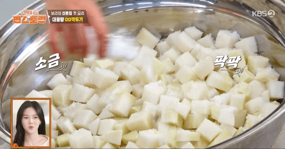 깍두기 담가볼게요. 그냥 깍두기를 담아도 맛있고, 남보라씨처럼 플레인 요구르트 하나 넣어서 먹으면 더 맛있습니다. 깍두기 담글 때, 남보라씨 레시피로 담아보세요.