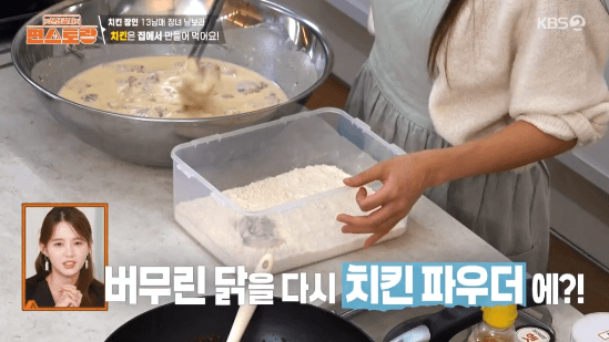 보통 집에서 닭을 튀긴다는 건 엄두가 나지 않는데요. 대가족의 장녀 남보라씨가 집에서 닭 튀기는 쉬운 방법을 알려준다고 합니다. 방법을 알면 집에서 닭 튀기는 거 어렵지 않아요.