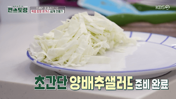 1. 양배추는 씻어서, 먹기 좋게 채 썰어줍니다.