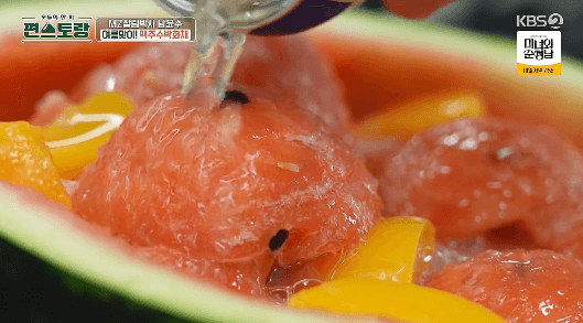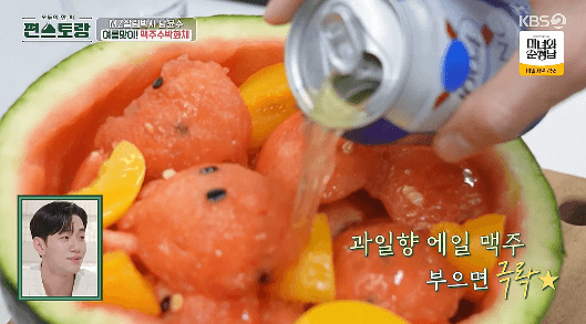 여름 무더위를 잊게 할 시원한 수박화채 만들어보겠습니다. 맥주가 들어가는데요. 알코올을 넣지 않아도 시원하고 맛이 있는 레시피입니다.