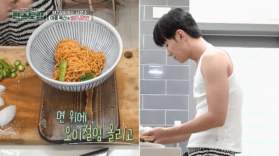 매콤한 불닭라면에 시원한 냉면육수가 만나서 환상적인 맛을 만들어 내는 요리입니다. 매콤하고 시원한 남윤수씨의 불닭냉라면 먹고 올여름 무더위 이겨내 보자고요.