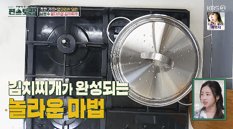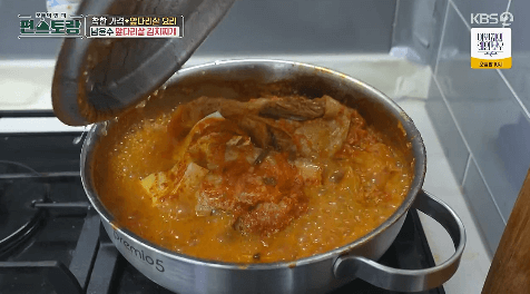 6. 15분 뒤 뚜껑을 열면 맛있는 김치찌개가 완성됐습니다.