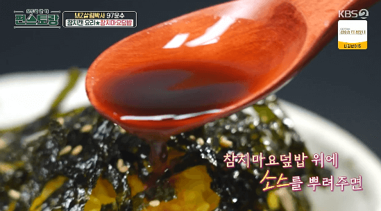 13. 참치마요덮밥에 적당량의 간장소스를 넣고, 비벼서 먹습니다.